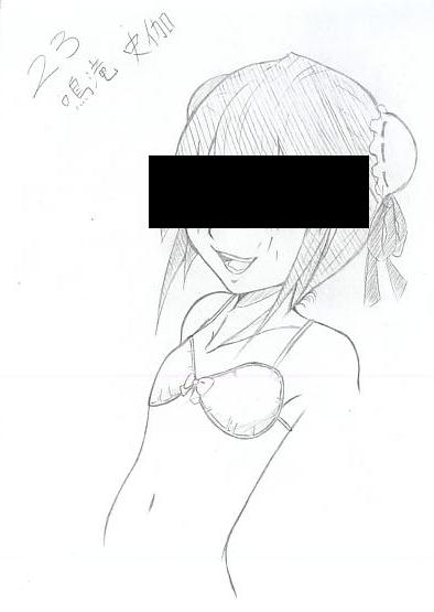 あまりにも可愛くないので途中で描くのをやめてしまった史伽だが、目の部分を隠してみたら可愛く見えるのだ。もうお腹のラインとか、自分で描いといてなんだけどかなりそそるわ。